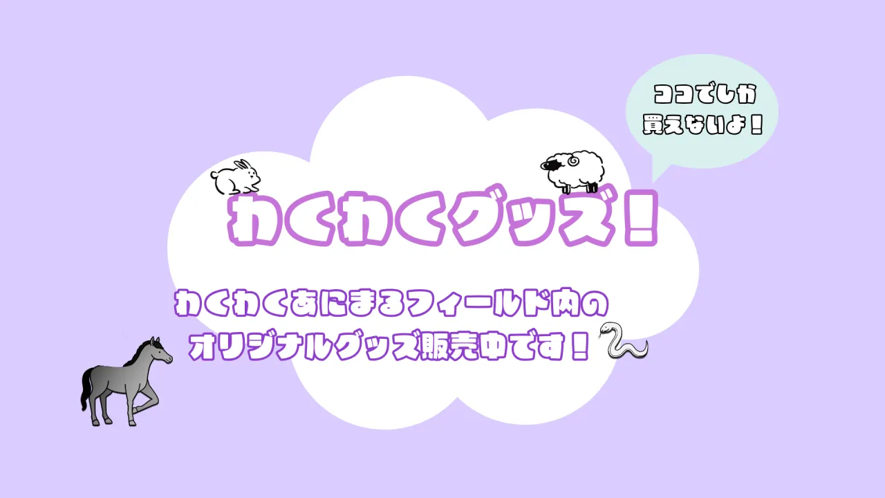 わくわくあにまるフィールドでしか手に入らないオリジナルグッズ販売中です!